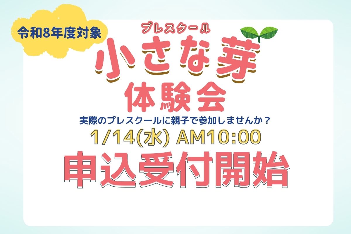 2月3日(火)、2月6日(金)開催のプレスクール「小さな芽」体験会の申し込み受付を開始しました。