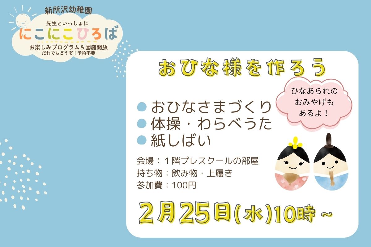 0歳から3歳のプレスクール「にこにこひろば」2月25日のプログラムです。